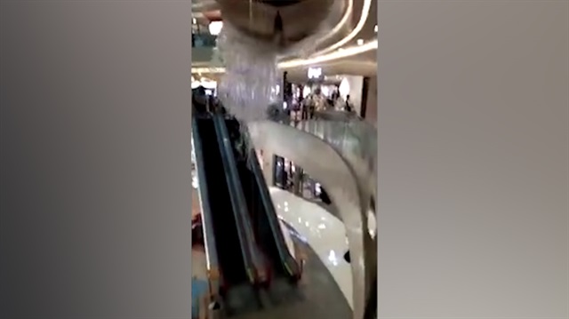 Bir AVM'nin yürüyen merdivenlerinin altında biriken su büyük bir gürültü ile aşağı kata döküldü. AVM'nin o saatlerde boş olması büyük bir felaketi önledi. Olay anı amatör kameraya böyle yansıdı.
