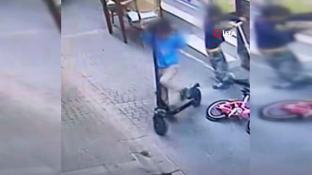 Kuşadası'nda iki küçük çocuğun scooter'ı çalıp bölgeden uzaklaşması ise çevredeki bir iş yerinin kamerasına yansıdı. Görüntülerde çocuklardan birinin boyundan büyük elektrikli Scooter'a binip gitmesi yer alırken, diğer çocuğunun elindeki oyuncak scooter'i bırakması yer aldı.