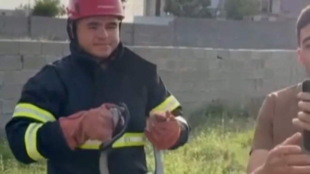 Osmaniye'de bahçeye giren bir buçuk metrelik kara yılanı yakalayan itfaiyeci, yılana su içirirken bazı vatandaşların yılanla hatıra fotoğrafı çektirdiği anlar kameralara yansıdı.