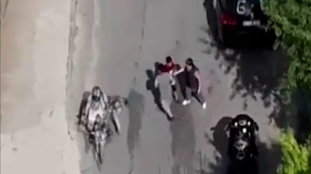 Bartın'da düğün konvoyunun önünü kesmek isteyen çocuklardan birine, motosiklet çarptı. O anlar, konvoyu havadan görüntüleyen dron kamerasına yansıdı.