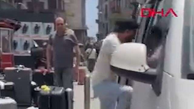 Beyoğlu'ndaki Galatasaray Meydanı'nda tek şeritli yolda durarak bagaj indiren şoförle otomobil sürücüsü Can Y. arasında tartışma çıktı. Dakikalarca yolda bekleyen Can Y., 'Yolun ortasında durup beni böyle bekletemezsin o kadar insanın hakkına girdin' diyerek şoföre tepki gösterdi. Şoför ise 'Beni kışkırtma' diyerek sürücünün üstüne yürüdü. Yaşananlar cep telefonu kamerasına yansıdı.