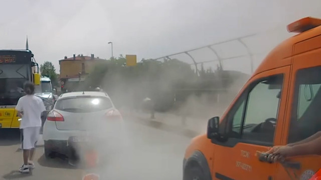 Ataşehir'de trafikte çıkan tartışmada bir sürücü, bıçakla üzerine gelen diğer sürücüye yangın tüpü sıkarak engel olmaya çalıştı.