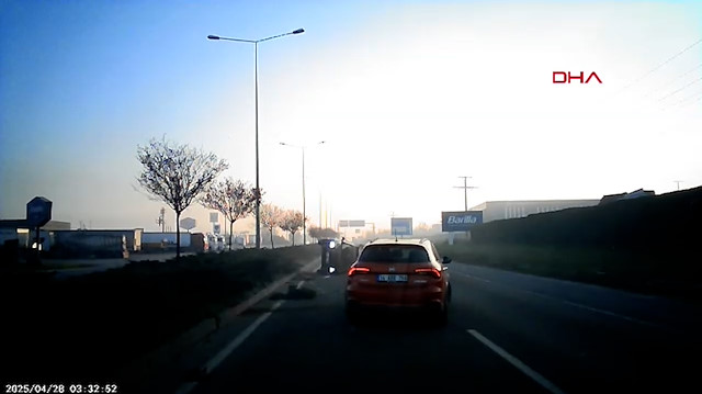 Bolu'da, D-100 kara yolunda, makas atan otomobilin çarptığı otomobil devrildi. Devrilen otomobildeki 1 kişi yaralanırken, kaza başka bir aracın kamerasına yansıdı.