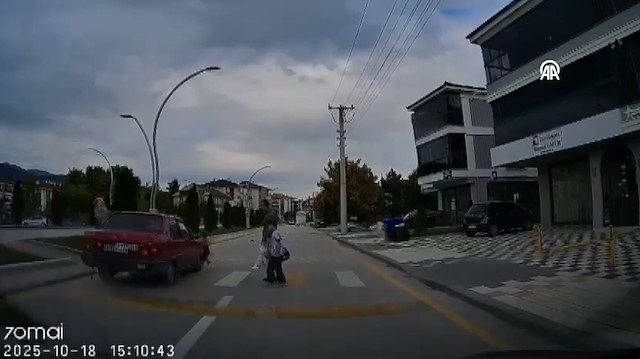 Bolu'da yaya geçidinden geçen çocuğa otomobilin çarpma anı araç kamerasınca kaydedildi.