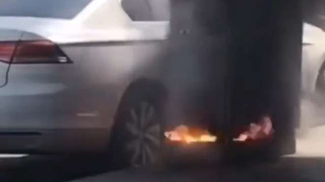 Nerede çekildiği bilinmeyen amatör video kaydında, park halindeki bir otomobilin yanındaki elektrik panosu yanmaya başlıyor.