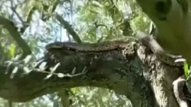 Bursa'nın İznik ilçesindeki zeytin ağacının üstünde dev yılanı görenler, gözlerine inanamadı. Cüssesiyle ürperten yılan, cep telefonu kamerasına yansıdı.