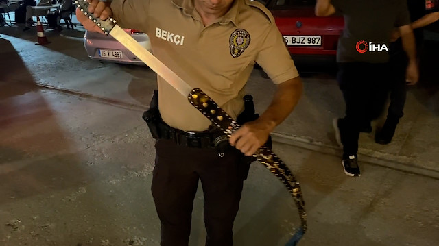 Bursa'nın İnegöl ilçesinde gece kartalları diye nitelendirilen mahalle ve çarşı bekçilerinin şüphelenip durdurduğu bir şahsın belindeki kemer görünümlü kılıfın içinde çıkan 60 santimlik döner bıçağı şaşırttı.