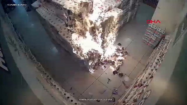 Çocuğun markete girip, yangın çıkardığı anlar iş yerinin güvenlik kamerasına yansıdı. Polis ekipleri çocuğu tespit etmek için çalışma başlattı.