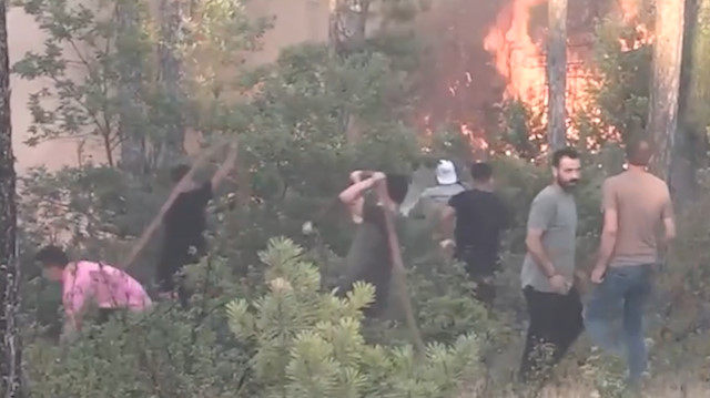 Ekiplerce yürütülen yoğun müdahaleyle yangının ilerleyişi durdurulmaya çalışılıyor. Bölge halkı da traktörlerinin arkalarına bağladıkları su dolu tankerlerle ekiplere destek veriyor.