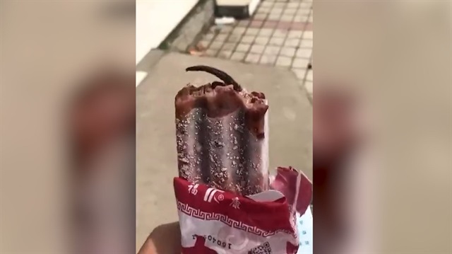 Çinli kadın marketten aldığı buzlu dondurmayı yemeye başlıyor ve yarıladığında dondurmanın içinde garip bir şey olduğunu farkediyor. İlk başta küçük bir tırtıl veya böcek sanılan hayvanın aslında yavru bir farenin kuyruğu olduğu gerçeği, şaşkına çeviriyor.