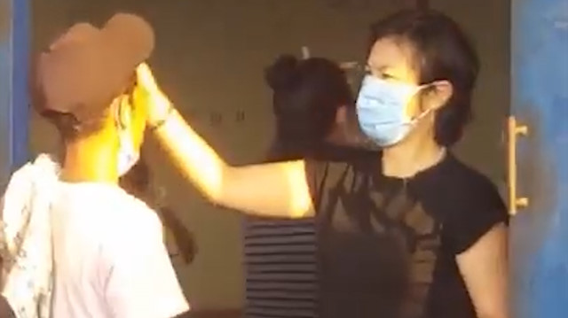 Nerede çekildiği bilinmeyen görüntülerde, bir kadın, işyeri girişinde sıraya girmiş çalışanların ateşini eliyle ölçüyor.