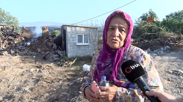 Çanakkale'nin Bayramiç ilçesinde çıkan orman yangınında evi zarar gören Faize Soran, geriye sadece canı, kimliği ve telefonu kaldığını söyledi.