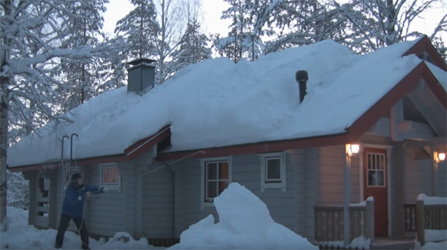 Ciddi tehlikelere sebep olan çatılardaki kar, bir sicim yardımıyla böyle temizlendi.