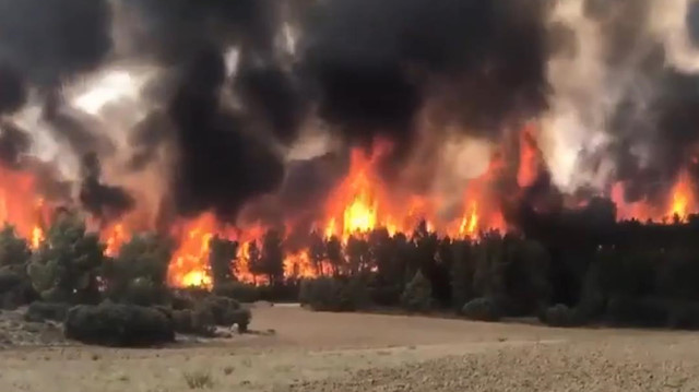 Cezayir'in Khenchela kentinde ormanlık alanda çıkan yangın kısa sürede büyüdü. Yangın, 1500 hektarlık alanın kül olmasına sebep oldu. Yangının çıkma nedeni araştırılırken alevler amatör kameralara yansıdı.