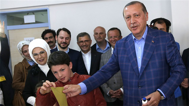 Cumhurbaşkanı Recep Tayyip Erdoğan, eşi Emine Erdoğan ile birlikte İstanbul Üsküdar'da oy kullanacağı okula geldi ve 3248 nolu sandıkta oyunu kullandı.