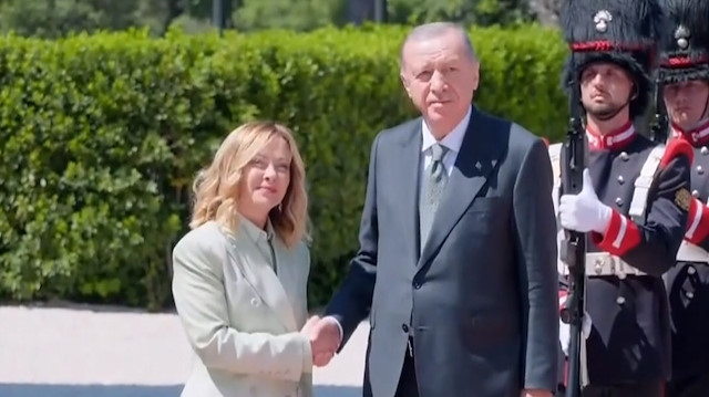 Cumhurbaşkanı Recep Tayyip Erdoğan, İtalya Başbakanı Giorgia Meloni davetine icabetle başkent Roma'ya geldi. Cumhurbaşkanı Erdoğan ve beraberindeki heyet, Roma Fiumicino Leonardo da Vinci Uluslararası Havalimanı'nda İtalya Protokol Müdürü Bruno Pasquino ile Türkiye'nin Roma Büyükelçisi Elif Çomoğlu Ülgen ve eşi Sinan Ülgen, Milano Başkonsolosu Mehmet Özöktem, Vatikan Büyükelçiliği Geçici Maslahatgüzarı Neslihan Altay ve Roma Büyükelçiliği personeli tarafından karşıladı. Cumhurbaşkanı Erdoğan havalimanının ardından Meloni'nin resmi görüşmelerini gerçekleştirdiği Villa Doria Pamphili'ya geçti. Cumhurbaşkanı Erdoğan, Villa Doria Pamphili'da İtalya Başbakanı Giorgia Meloni tarafından resmi törenle karşılandı. Cumhurbaşkanı Erdoğan, resmi karşılama töreninde karşılama kıtasını karşıladı. Meloni ile ikili görüşme Resmi karşılama töreninin son kısmında Meloni ile birlikte basına tokalaşarak poz veren Erdoğan, daha sonra Meloni ile ikili görüşmeye geçti. Erdoğan'ın, Meloni görüşmesinin ardından İtalyan lider ile birlikte Türkiye ile İtalya arasındaki iş birliğini güçlendirecek adımların ele alınması ve güncel meseleler hakkında görüş alışverişinde bulunulmasına yönelik Türkiye-İtalya hükümetlerarası zirvesine başkanlık etmesi bekleniyor.