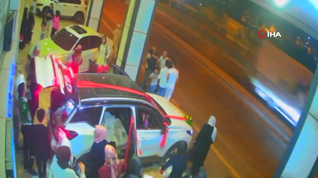 Arabayı yanaştıran damat, heyecandan el frenini çekmeyi unutunca içinde gelinin olduğu otomobil kaza yaptı. Gelin ölümden döndü, bir davetli ise otomobilin altında kalmaktan son anda kurtuldu. Bursa'da 'gülsek mi? Ağlasak mı?' dedirten görüntü, bir düğün salonunun önünde çekildi. Edinilen bilgiye göre, dünya evine giren çift, düğün bitiminde evlerine doğru yola çıkmak için hazırlandı. Gelin arabasını düğün salonunu önüne getiren sürücü, heyecandan el frenini çekmeyi unuttu. Aracın kapıları açık vaziyette bekleyen cip tarzı araç, gelinin binmesiyle hareket etmeye başladı. Ana yol üzerindeki düğün salonundan gelinle birlikte ayrılan cip, anayolun ortasında bulunan metro duvarına kadar gitti. Herkesin nefesini tutarak arkasından baktığı araç, duvara çarptıktan sonra durdu. O esnada gelen araç sayısının az olması ve fark edilmesi üzerine korkulan büyük bir kaza olmadı. Herkesin derin bir 'oh' çektiği kazanın ardından gelen ve yanındaki arkadaşı büyük korku yaşadı. Arabanın hareket ettiği anda önünden kaçan kişi ise saniyeler ile aracın altında kalmaktan kurtuldu.