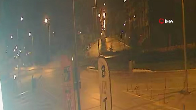 Denizli'de gece saatlerinde meydana gelen kazada süratle kavşağa giren otomobil, adeta uçtu. Kavşaktaki heykelleri biçerek metrelerce havaya yükselen otomobilin kaza anı güvenlik kamerasına yansıdı.