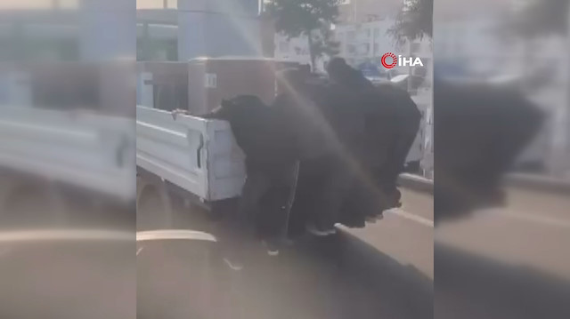 Olay Bağlar ilçesinde yaşandı. İçinde beyaz eşya bulunan bir pikabın arkasına tutunan 4 çocuk, canlarını hiçe sayarak yolculuk yaptı. Çocukların tehlikeli yolculuğu yürekleri ağızlara getirdi. Çocuklar bir süre sonra araçla birlikte gözden kaybolurken, o anlar cep telefonu kamerasına yansıdı.