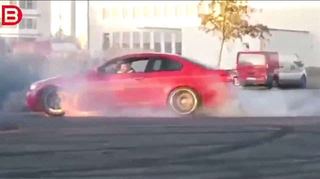 'Drift' yapmak isterken BMW marka lüks aracın motorunu yakan adamın görüntüleri sosyal medyadan paylaşıldı.