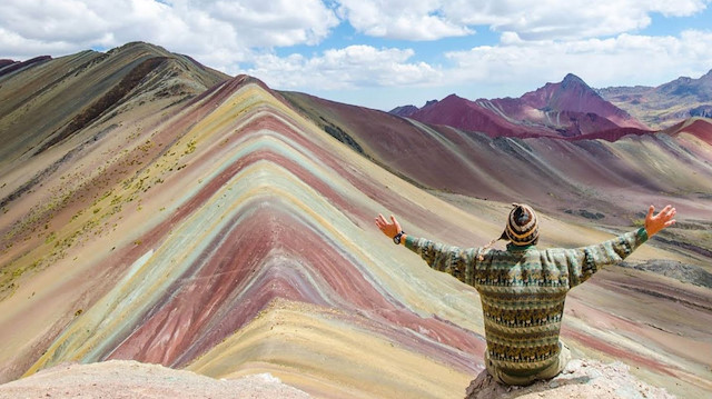 Dünyanın doğal güzelliklerinden Peru'daki Gökkuşağı Dağı renkleri ile görenlere muhteşem bir manzara sunuyor. Bu doğal güzelliğin sebebi, Vinicunca bölgesindeki karların erimesi ile beraber toprak aşınmaya başlarken farklı mineral tabakalarının dağ boyunca katman halinde açığa çıkmasıdır.