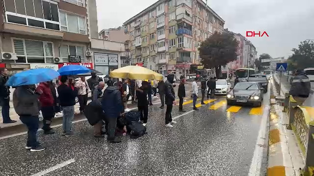 Edirne'de yaya geçidinde otomobilin çarptığı Nurgül Çemberli (56), yaralandı. Kuvvetli yağışın etkisini sürdürdüğü kentte, çevredeki esnaf, ambulans gelene kadar Çemberli'nin ıslanmaması için şemsiye açıp, üstüne mont örttü.