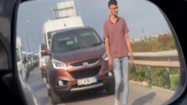 Bursa'da emniyet şeridini ihlal eden otomobillere ders vermek isteyen bir vatandaş, trafik üstünlüğü olan araçların kullanması gereken şeritten yürüyerek bütün kural tanımazları cezalandırdı. Görüntüler, İstanbul-İzmir otobanında kayda alındı. Bursa'nın merkezinden de geçen otobanda, akşam saatlerinde yaşanan trafik yoğunluğunda bazı kural tanımazlar, trafik üstünlüğü olan araçların kullanması gereken şeridi ihlal etti. Bunu gören bir vatandaş ise, bulunduğu araçtan inerek emniyet şeridinden yürümeye başladı. Trafik ihlali yapanları unutamayacakları bir ders veren yaya, sosyal medyada 'adam gibi adam' olarak ilan edildi. Emniyet şeridinin adaletini sağlayan vatandaşı önünde görenler ise, hiçbir tepki gösteremeden yeniden normal şeridine dönmek için girişimde bulundu.