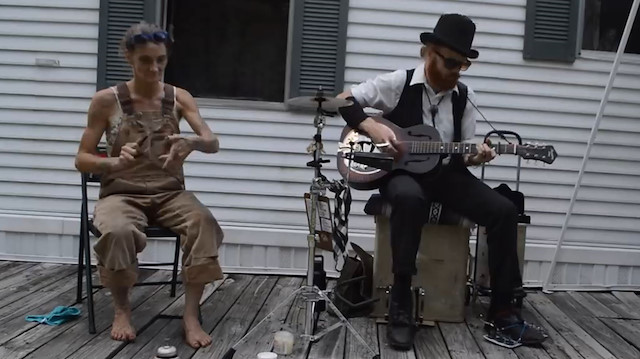 Spoon Lady isimli kadın kaşık ve zil kullanarak 'resonator gitar' çalan partnerine eşlik ediyor...
