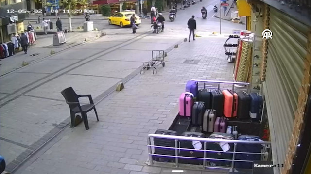 Fatih'te, annesinin elinin bırakıp yola çıkan çocuğa motosikletin çarpması güvenlik kamerasınca kaydedildi.