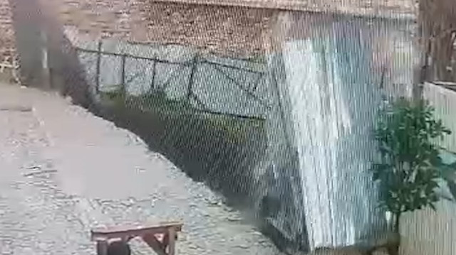 Olay anı ise güvenlik kamerasına yansıdı. Olayda yaralanan olmazken, çevrede önlem alan otel çalışanları bir süre panik yaşadı. Olay nedeniyle yol trafiğe kapatılırken, belediye ekipleri sokakta çalışma başlattı.