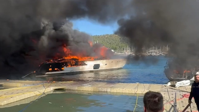 Fethiye'de yanan 3 tekneye müdahale ediliyor