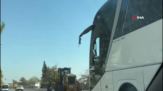 Gaziantep'te şehirler arası sefer yapan bir otobüsün şoförü, kırılan sol aynaya ilginç bir çözüm buldu. Seyir halindeyken aynası kırılan şoför, yolculuğa aynayı eliyle tutarak devam etti. O anlar ise otobüsün yanından geçen bir araçtaki vatandaş tarafından cep telefonu kamerasıyla kaydedildi.