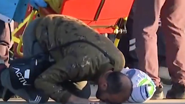 Uçaktan koşarak inen bir baba, 'şükür' secdesi yaptı.