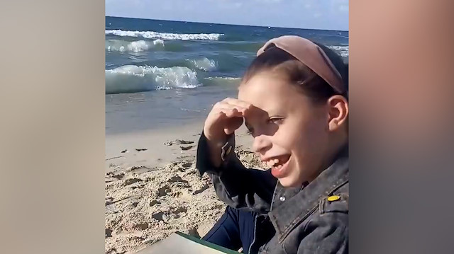 Gazze'de yaşayan küçük kız, Küresel Sumud Filo'sunun yolunu gözlerken sahilde çizim yaptı.