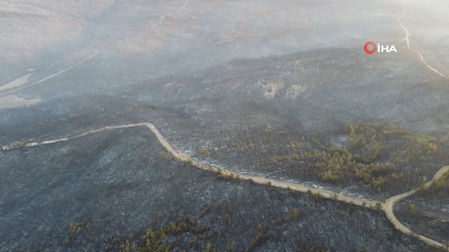Çanakkale'nin Gelibolu ilçesinde çıkan orman yangını büyük ölçüde kontrol altına alındı. Yanan yerler dron ile havadan görüntülendi. Yangın 16 Ağustos saat 16.28'de Gelibolu ilçesi Tayfur ve Cumalı köyü mevkiinde çıktı. Alevler rüzgarında etkisiyle kısa sürede büyüyerek geniş bir alana sıçradı. İhbar üzerine bölgeye Orman Bölge Müdürlüğü ekipleri sevk edildi. Ekiplerin alevlerle yoğun mücadelesi sonrası yangın büyük ölçüde kontrol altına alındı. Konu ile ilgili saat 15.00 sıralarında açıklama yapan Tarım ve Orman Bakanı İbrahim Yumaklı, 'Çanakkale / Gelibolu yangını orman kahramanlarımızın aralıksız mücadelesi ile büyük ölçüde kontrol altına alınmıştır. Bölgede soğutma çalışmalarımız devam etmektedir. Tarihi yarımadada bulunan şehitliklerimiz yangınlardan etkilenmemiştir' dedi. Yangının 3'üncü gününde yanan ormanlık alanlar dron ile havadan görüntülendi.