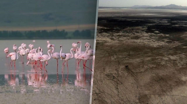 Kırşehir'in Mucur ilçesinde bulunan ve İç Anadolu Bölgesi'nin önemli su kaynaklarından Seyfe Gölü'nde temmuz ayından bu yana su olmayınca martı, turna, ördek, flamingo ve çıkrıkçı gibi göçmen kuş türleri konaklamadan yollarına devam ediyor.