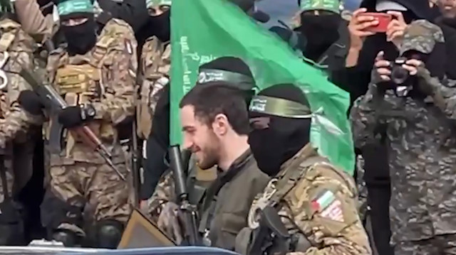 Hamas, Gazze'de ateşkes ve esir takası anlaşması kapsamında bugün serbest bırakılacak hayattaki 6 İsrailli erkek esirden 3'ünü daha Nusayrat Mülteci Kampı'nda Uluslararası Kızılhaç ekiplerine teslim etti.
