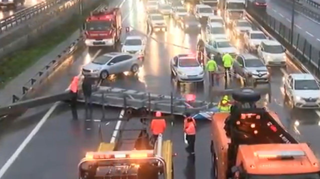 TEM Hasdal- Göktürk bağlantı yolunda yön tabelası yola devrildi. Tabeladan kaçmak isteyen araçlar kaza yaparken trafikte aksama meydana geldi.