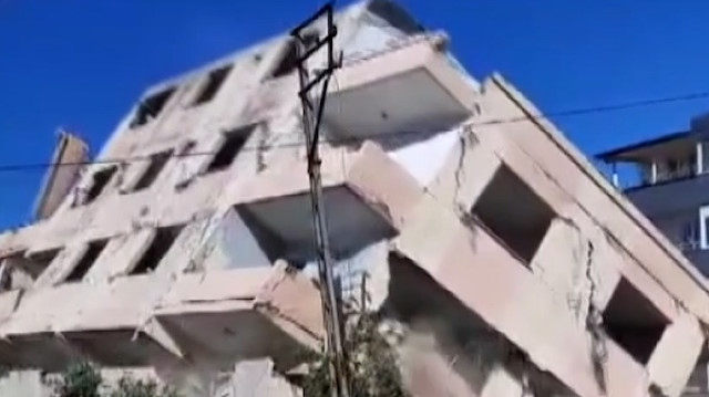 Kahramanmaraş merkezli depremlerde ağır hasar alan Hatay'da mahkeme süreci sona eren binaların yıkım ve enkaz kaldırma çalışmaları aralıksız sürüyor. Antakya ilçesi Esentepe Mahallesi'nde bulunan 4 katlı bina, iş makinesinin darbesiyle yıkıldı. Binanın yıkılma anı ise kameralara anbean yansıdı. 4 katlı binanın yıkımı esnasında herhangi bir olumsuzluk yaşanmadı.