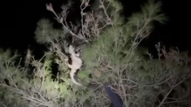 Hatay'ın Belen ilçesinde ağaçta asılı kalan leylek, itfaiye ekiplerince kurtarıldı.