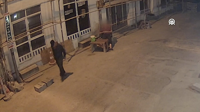 Adana'da inşaat önünde uyuyan bekçinin cebindeki telefonunun yankesicilik yöntemiyle çalınma anı güvenlik kamerasınca kaydedildi.