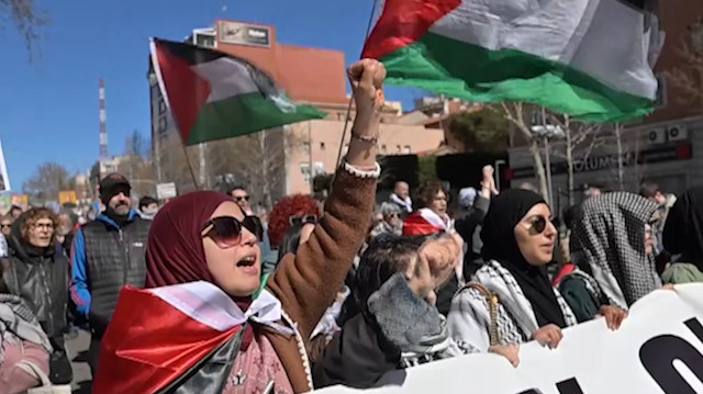 İsrail'in ateşkesi bozarak Gazze'ye başlattığı saldırılar İspanya'nın başkenti Madrid'de protesto edildi. Filistin halkıyla dayanışma içinde olan bazı sivil toplum örgütlerinin çağrılarıyla İsrail'in Madrid Büyükelçiliği önünde toplanan kalabalık, İsrail karşıtı gösteri düzenledi.