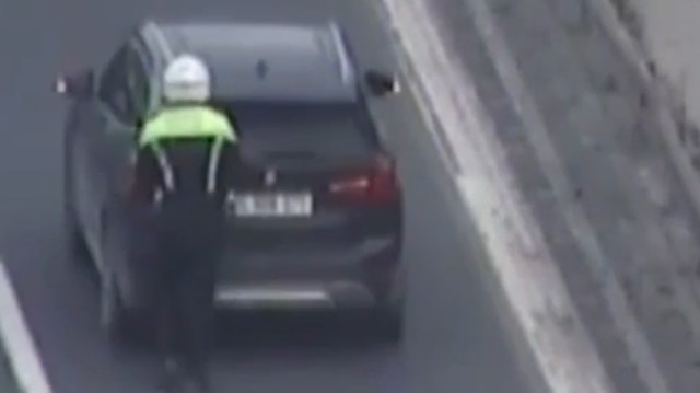 İstanbul'da köprüde arıza yapan aracı polis memurunun itmesi güvenlik kamerasınca kaydedildi. Motosikletli polis memuru Ebubekir Sıddık Doğru, Fatih Sultan Mehmet Köprüsü'nün TEM güney istikametinde, 34 MRN 879 plakalı cipin arıza yaptığını tespit etti. Trafik güvenliğini sağlamak için önlem alan polis memuru, aracı köprünün çıkışına kadar itip emniyetli bir alana çekti. Sürücü, polise duyarlılığı ve yardımı için teşekkür etti. Güvenlik kamerasınca kaydedilen görüntülerde, Fatih Sultan Mehmet Köprüsü'nde arıza yapan cipi, polis memurunun iterek güvenli alana götürdüğü görülüyor.