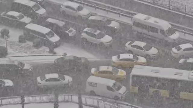 Yoğun yağışın etkili olduğu bazı bölgeler beyaza bürünürken, yollarda biriken kar nedeniyle Arnavutköy'de araçlar ilerlemekte güçlük çekti.