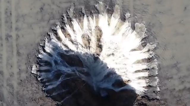 İzmir Menderes'te kırsaldaki tarım arazilerinde rekor yağış sonrası yeni bir düden daha meydana geldi. Şelaleyi andıran doğa olayını görüntülemek isteyen vatandaşlar çevre köylerden araçlarıyla bölgeye akın etti.