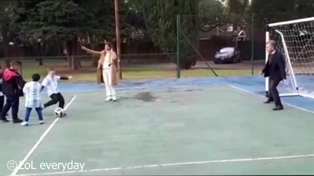 Küçük futbolcunun attığı şut Arjantin Cumhurbaşkanının sakatlanmasına neden oldu. İşte o anlar...