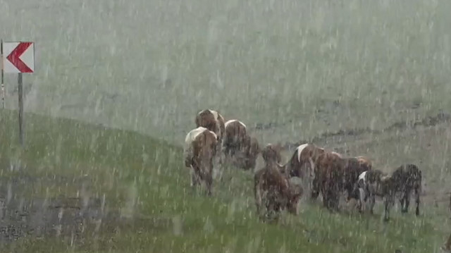 Kars'ın Susuz ilçesi kırsalında hayvanlarını otlatırken kar yağışına hazırlıksız yakalanan besiciler, yerleşim yerlerine dönmek zorunda kaldı.