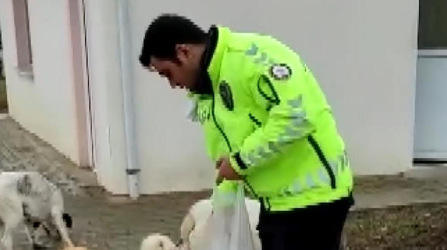 Kilis'te polis ekipleri, hava sıcaklığının düşmesinin ardından yiyecek bulmakta zorlanan sokak hayvanlarını unutmadı. İl Emniyet Müdürlüğü Bölge Trafik Denetleme Şubesi ekipleri, kendi aralarında topladıkları paralarla aldıkları mamaları kentin birçok noktasında sokak hayvanlarına verdi. Polisler, bazı köpekleri de elleriyle besledi.