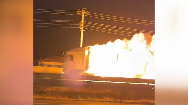 Frenleri tutmayınca yaklaşık 8 kilometre boyunca dorsesi yanarak ilerleyen tırdaki kimyasal madde ve boyalar yola saçılarak yandı. Şarampolde bulunan demir bariyerlere çarparak durabilen aracın sürücüsü kendisini dışarı attı. Yangın, yol kenarındaki ağaçlara da sıçradı.