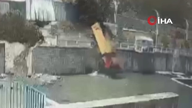 Artvin'in Murgul ilçesinde kontrolden çıkan kamyon dereye uçtu. Kaza anı güvenlik kamerasına saniye saniye yansıdı.